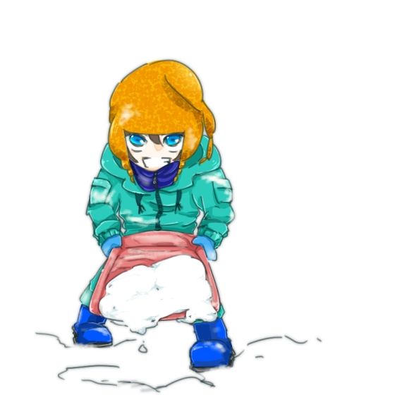こっち側に裕太がいるのです、今正に裕太にすくった雪をかけようと